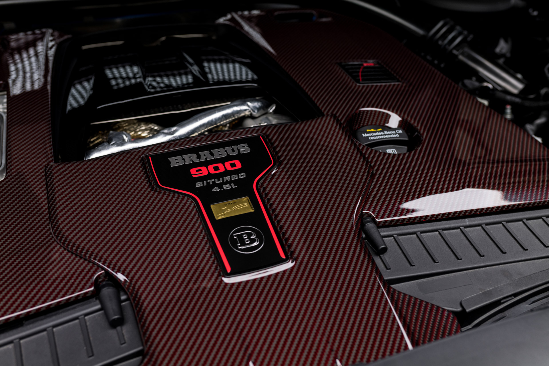 Für die unvergleichliche Performance des BRABUS 900 ,,Superblack" sorgt der 662 kW / 900 PS starke BRABUS Rocket 900 4,5-Liter-V8-Twin-Turbo-Hubraummotor mit neu entwickelten Turboladern. Eine exklusive Obsidian Black Metallic"-Lackierung akzentuiert das BRABUS typische Widestar Exterieur-Design in Kombination mit der neuen BRABUS Stainless-Steel Hochleistungs-Sportauspuffanlage mit unverwechselbaren Vollcarbon-Endrohrblenden und integriertem Launch Ambience Light, welche überall für die richtige Akustik und Optik sorgt.