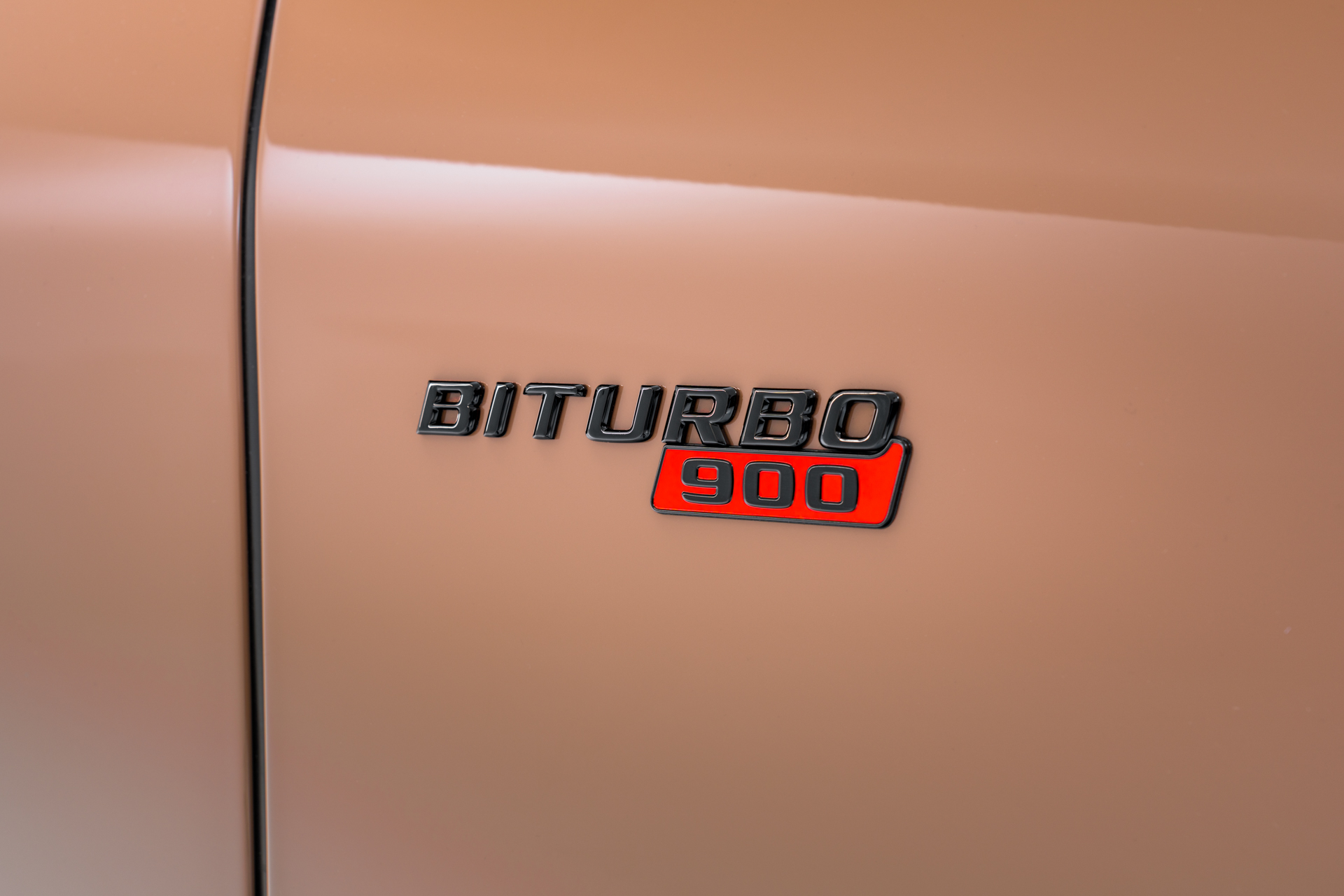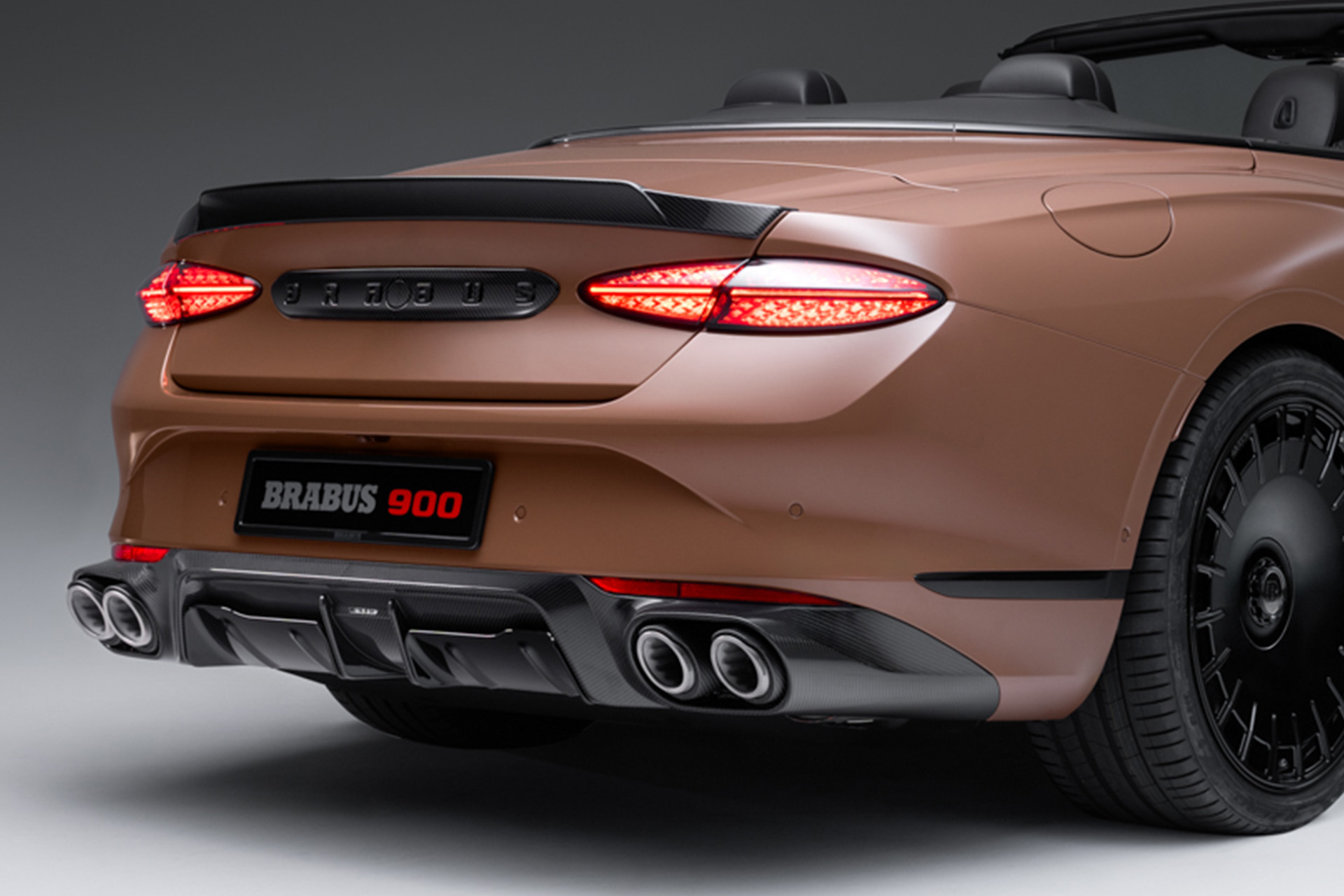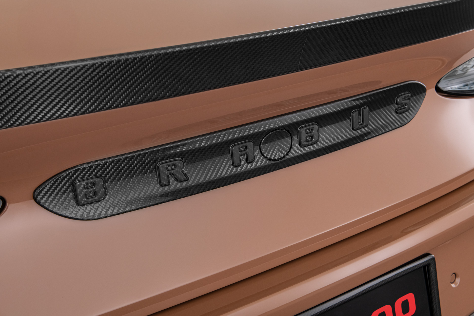 Das maßgeschneidertes Sicht-Carbon-Exterieurkonzept und das Aerodynamik-Konzept schärfen sie die Silhouette des BRABUS 900 und setzen die vier Carbon-ummantelten Titan-Endrohre der BRABUS Klappen-Sportauspuffanlage eindrucksvoll in Szene. Die exklusive Lackierung in „Pale Brown“ vollendet den Auftritt des hier gezeigten Masterpiece Supercars mit einem einzigartigen 1-Second-Wow Effekt.