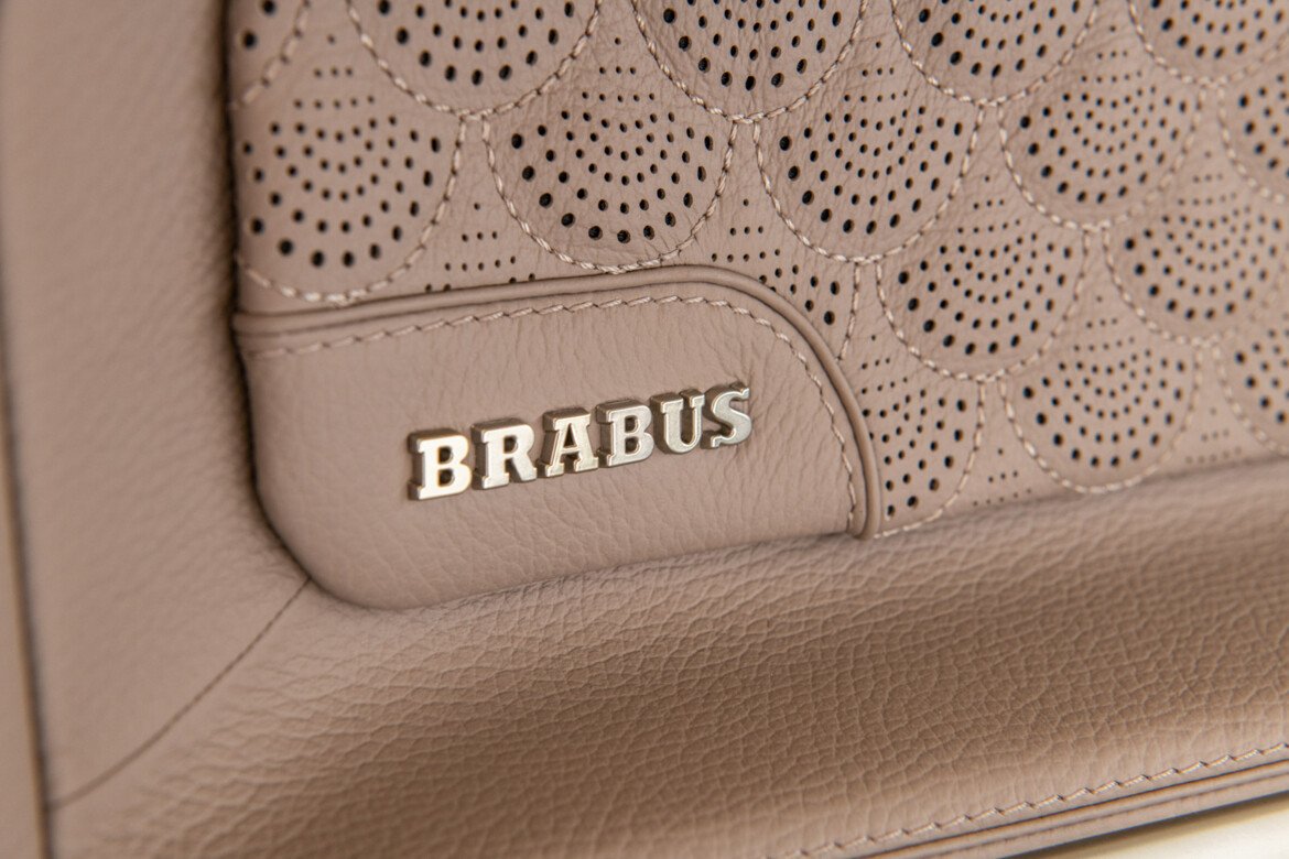 BRABUS fine leather in der Farbe OUTBACK SAND mit Shell-Design Steppung und "B"-Prägung