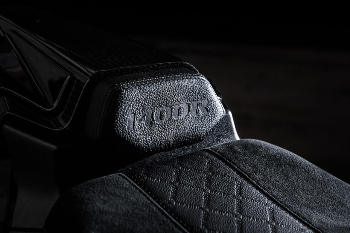 | Custom-made rider's seat with BRABUS embossed logo pattern, backrest cushion with embossed 1400 R logo | |