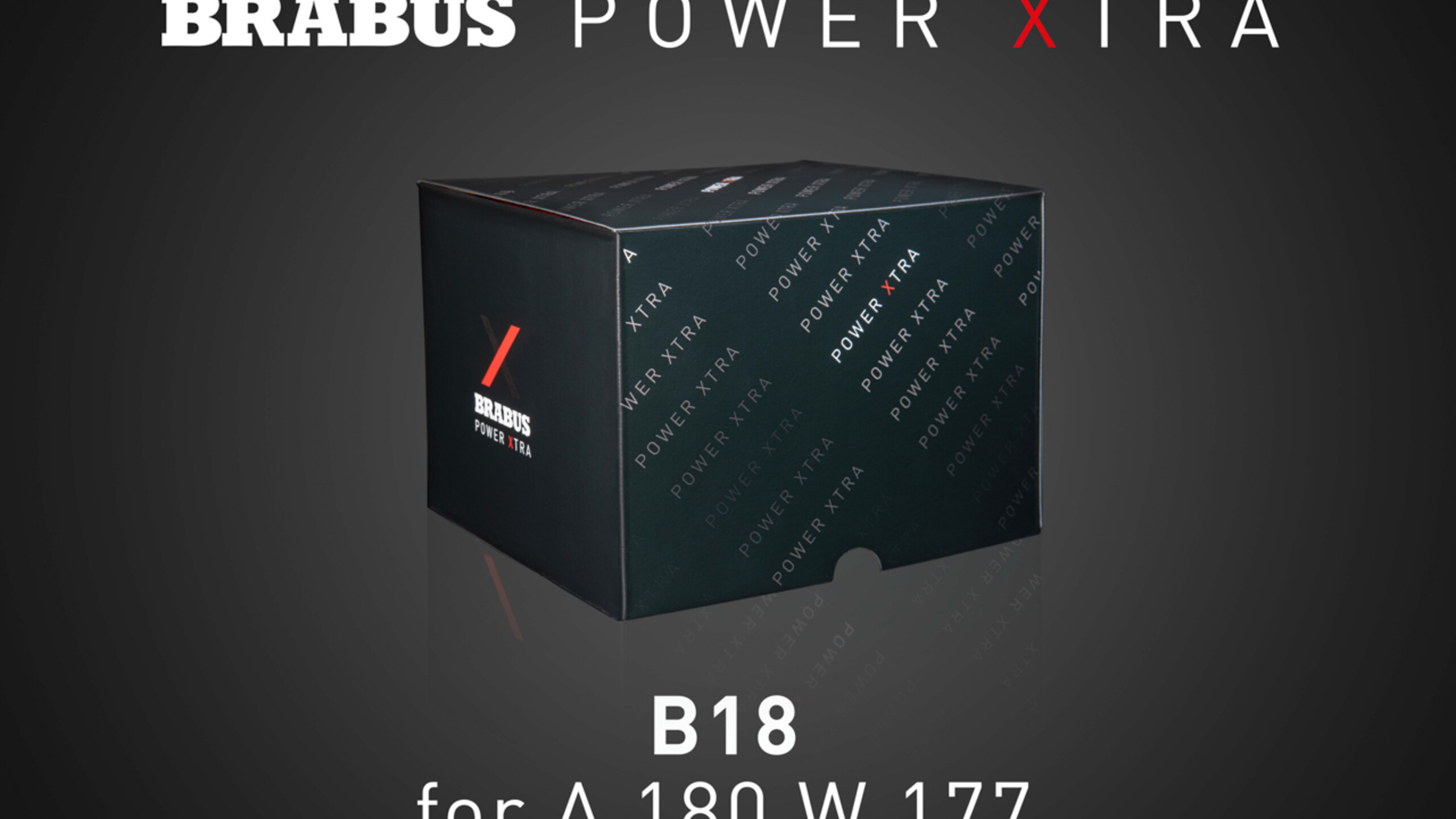 BRABUS extra power for your vehicle: The BRABUS PowerXtra B18 performance kit based on the A 180 consists of a processor-driven auxiliary control module for the engine control unit. In addition to a bump in peak torque from 200 Nm to 274 Nm, the rated output jumps by 30 kW/41 hp from 100 kW/136 hp to 130 kW/177 hp. The plug-and-play control unit is adapted to the standard engine management.